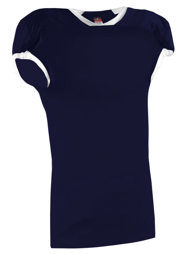 Youth – Full length PRO-FLEX CUT tailored jersey that contours to the shoulder and arms for improved range of motion and a no grab fit.;Lightweight, High Abrasion resistant AR-TECH front and back body fabric.;Double thickness mechanical STRETCH DAZZLE fabric, PRO-FLEX fit yoke and sleeves, with contrast color elastic sleeve opening.;4-way stretch mesh fabric bottom body, front, back, side inserts, underarm and upper back for breathability, durability and full range of motion;Fold-over mitered v-neck.;Cover seamed throughout for additional strength and appearance –
