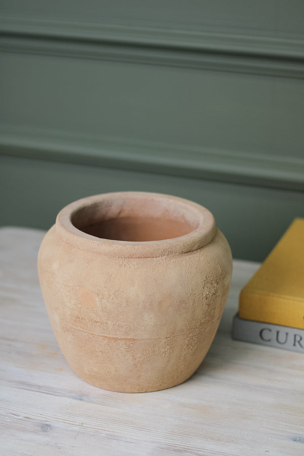 Add a touch of elegance and nature to your home with the Saltash Planter. Crafted from aged terracotta, this planter features a beautifully simple rounded shape and contoured edge detailing. Perfect for showcasing faux greenery, it will bring life and warmth to any space. Elevate your decor and bring the outdoors in with the Saltash Planter.